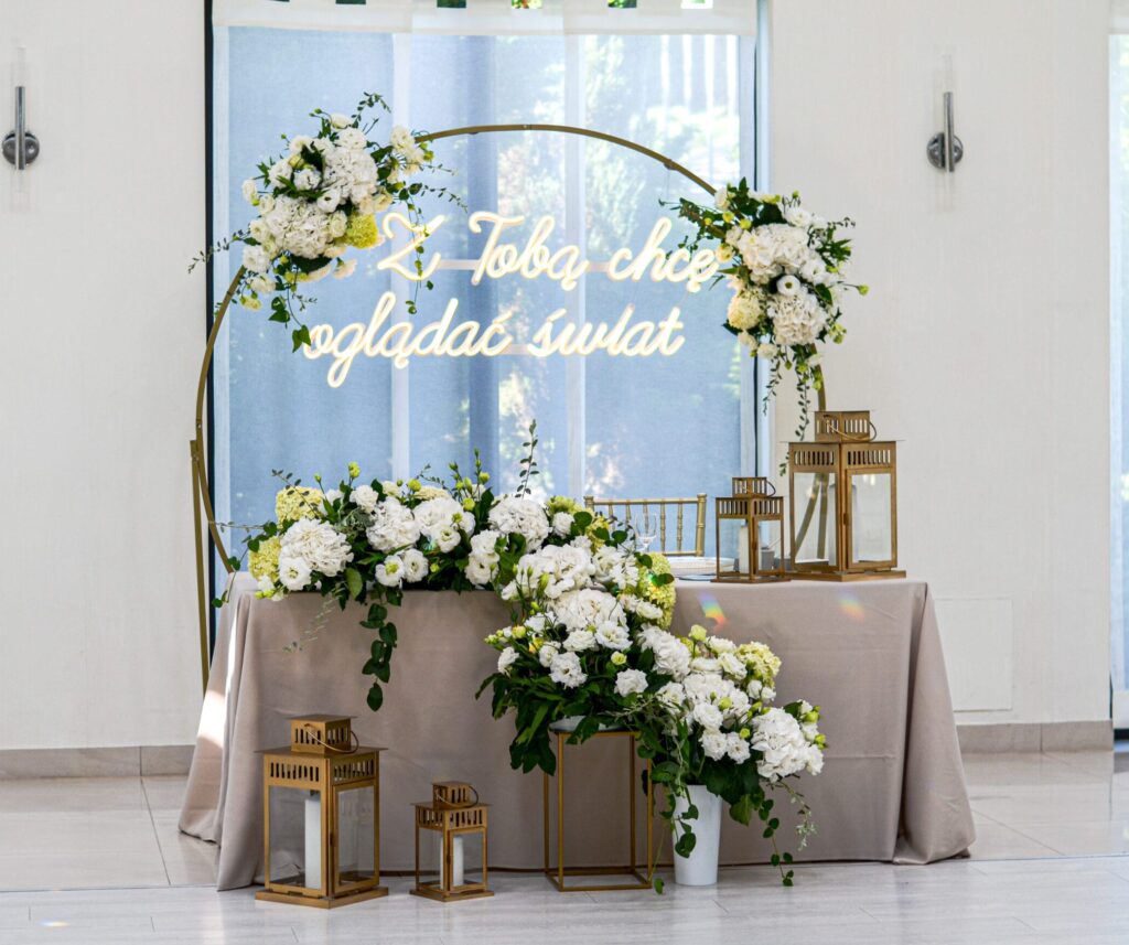 Proponujemy dekoracje sal weselnych i okolicznościowych, tworząc spójny wystrój. Dbamy o każdy detal, aby podkreślić charakter uroczystości i nadać jej niezapomnianego klimatu.