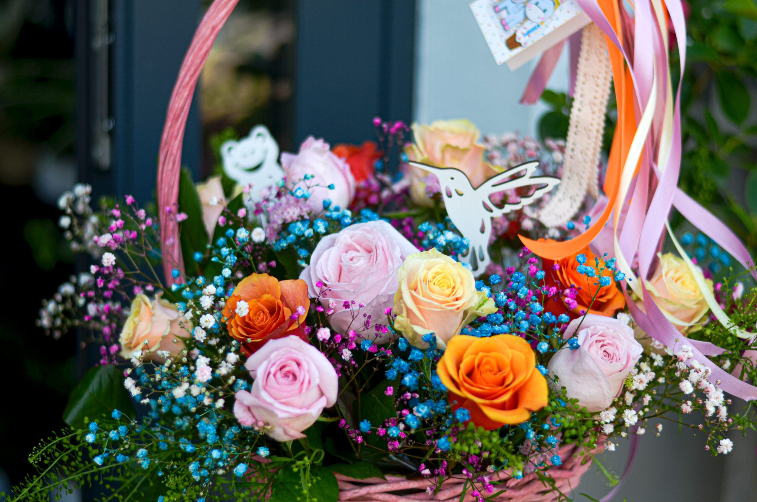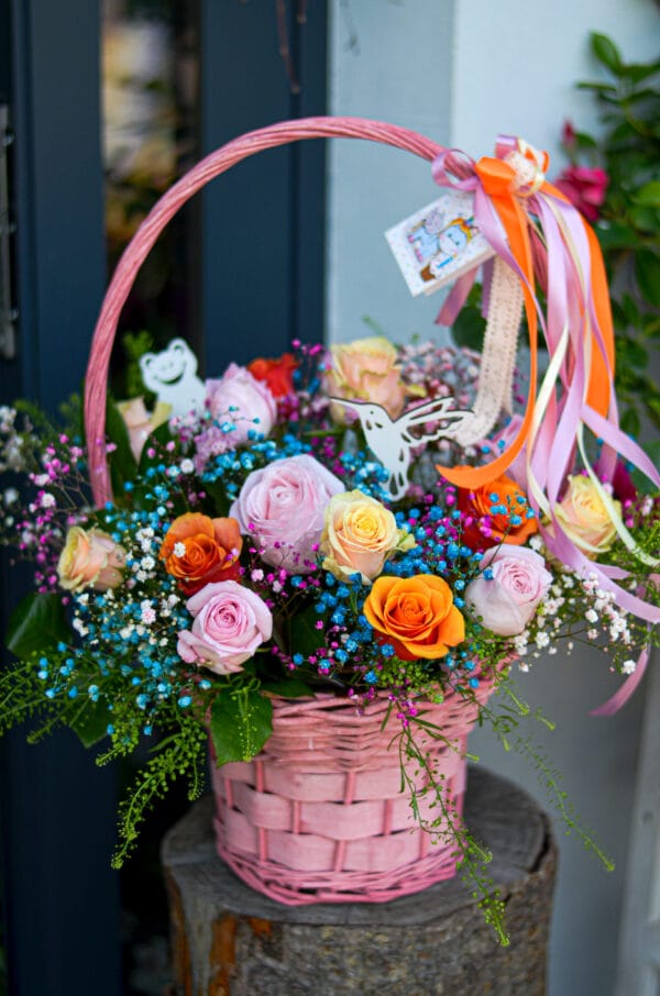Uroczy kosz kwiatowy w pastelowej kolorystyce, wypełniony 15–20 świeżymi kwiatami sezonowymi. Lekka, radosna kompozycja idealna na urodziny, podziękowanie lub bez okazji – by wywołać uśmiech.